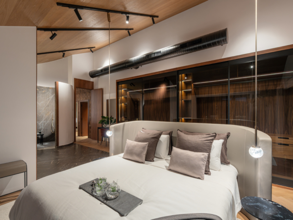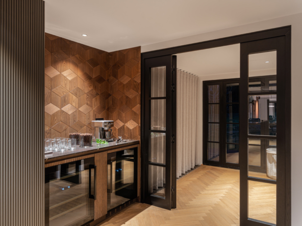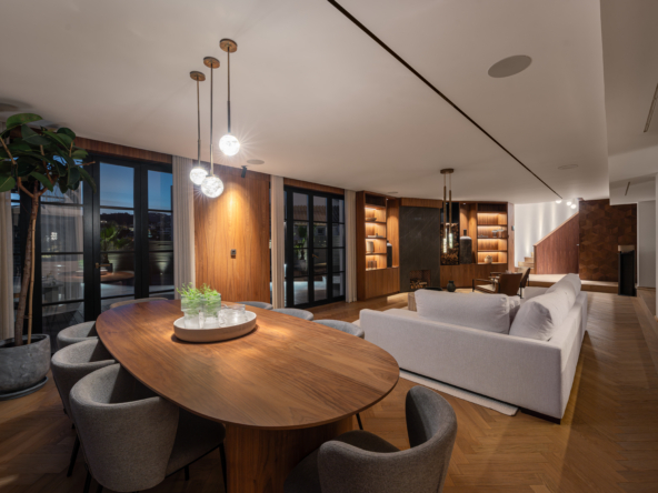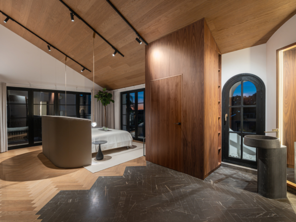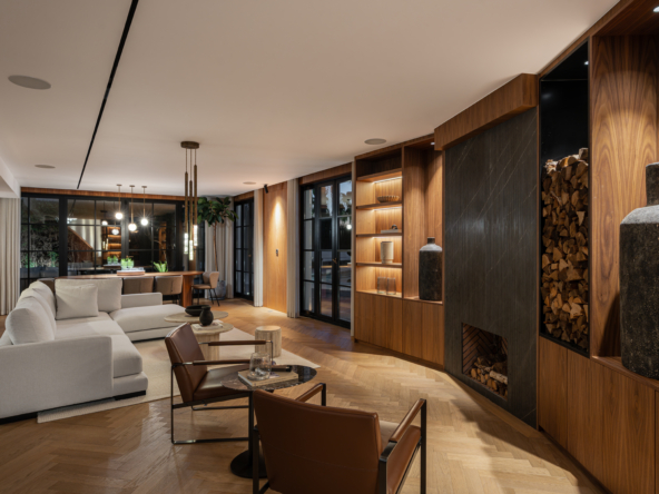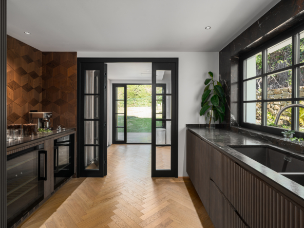 This is not your average Golf Valley villa. It has been redesigned with a clear architectural direction, where proportions, materials and flow have been carefully selected. From the entrance, the detailing is evident: herringbone oak flooring, bespoke walnut joinery, fluted cabinetry and dark-veined marble, all brought together with consistency rather than contrast for effect.