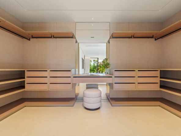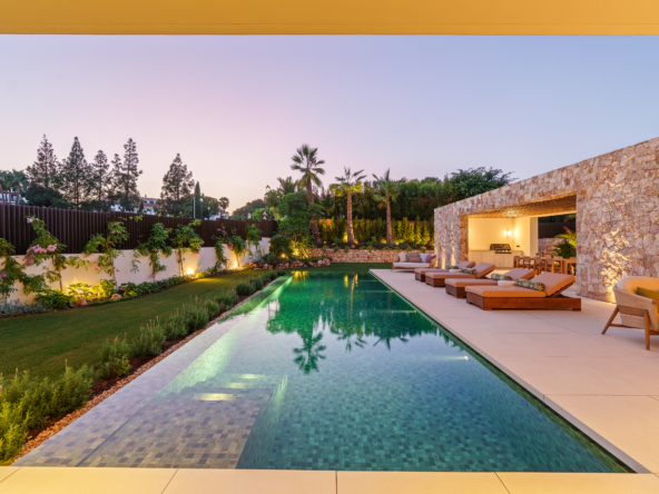 Casa Cazorla, developed by Casas Fintech, is a masterpiece of contemporary architecture located in the prestigious Lomas de Marbella Club on Marbella’s Golden Mile. Built across 1,460m² on a 1,010 m² plot, this 7-bedroom residence embodies a perfect balance between elegance, privacy, and Mediterranean serenity. Designed with wood and stone as its main elements, the home exudes an organic warmth—giving the inside a sense of green tranquility and the outside a calm, natural harmony.