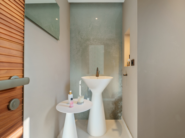 Casa K occupies a privileged hillside position that brings light, space and outlook into daily living.The architecture follows a contemporary Mediterranean style with generous interior volumes, extensive glazing and a natural flow between indoor areas and the surrounding terraces. Access is discreet via a private driveway with substantial parking capacity of up to eighteen vehicles. The independent guest house allows visitors or extended family to stay comfortably while preserving privacy within the main residence.