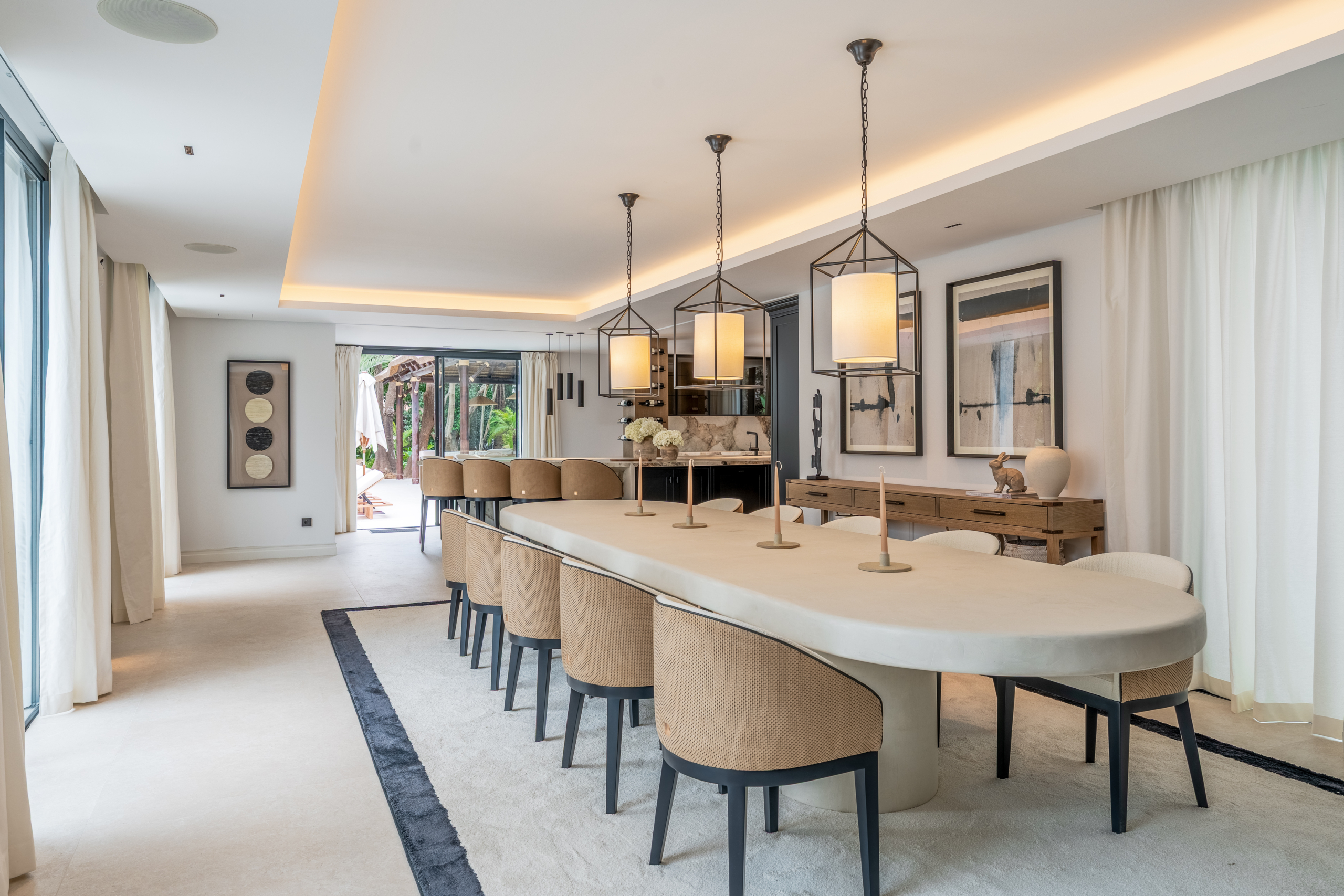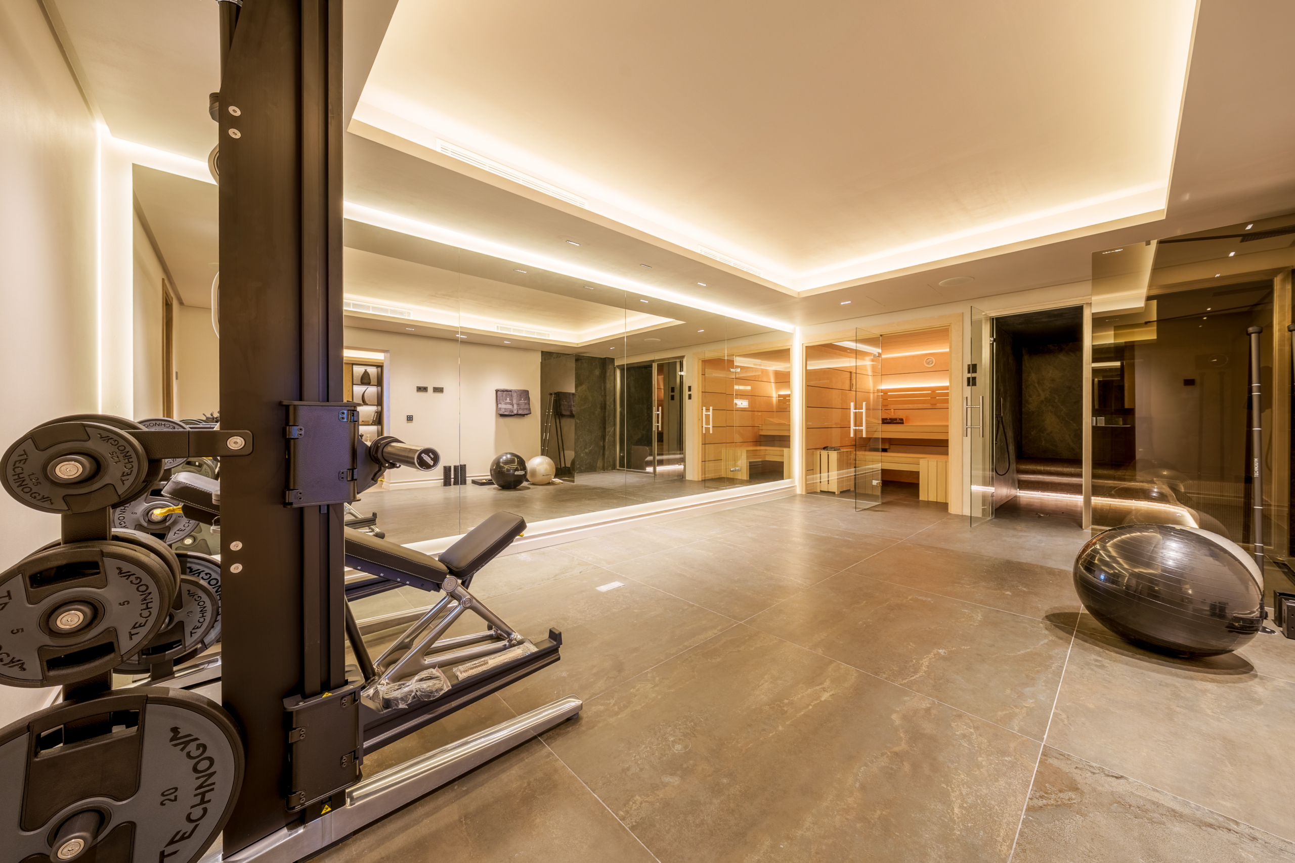 Spread across 3 floors, Villa Las Palmeras boasts an incredible lower level, exceeding 300 m2with a 3-metre ceiling. This expansive space promises endless possibilities for entertainment and relaxation, featuring a private garage, a driveway complete with a car turning plate and a lavish spa offering a sauna and steam room. There is also a state-of-the-art indoor gym available for residents to enjoy, as well as a home cinema.